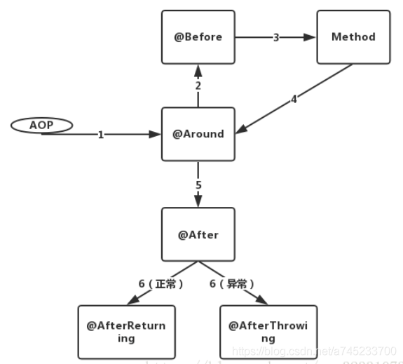 (4)返回后通知(AfterReturning Advice):在连接点正常完成后执行的通知(如果连接点抛出异常,则不执行)